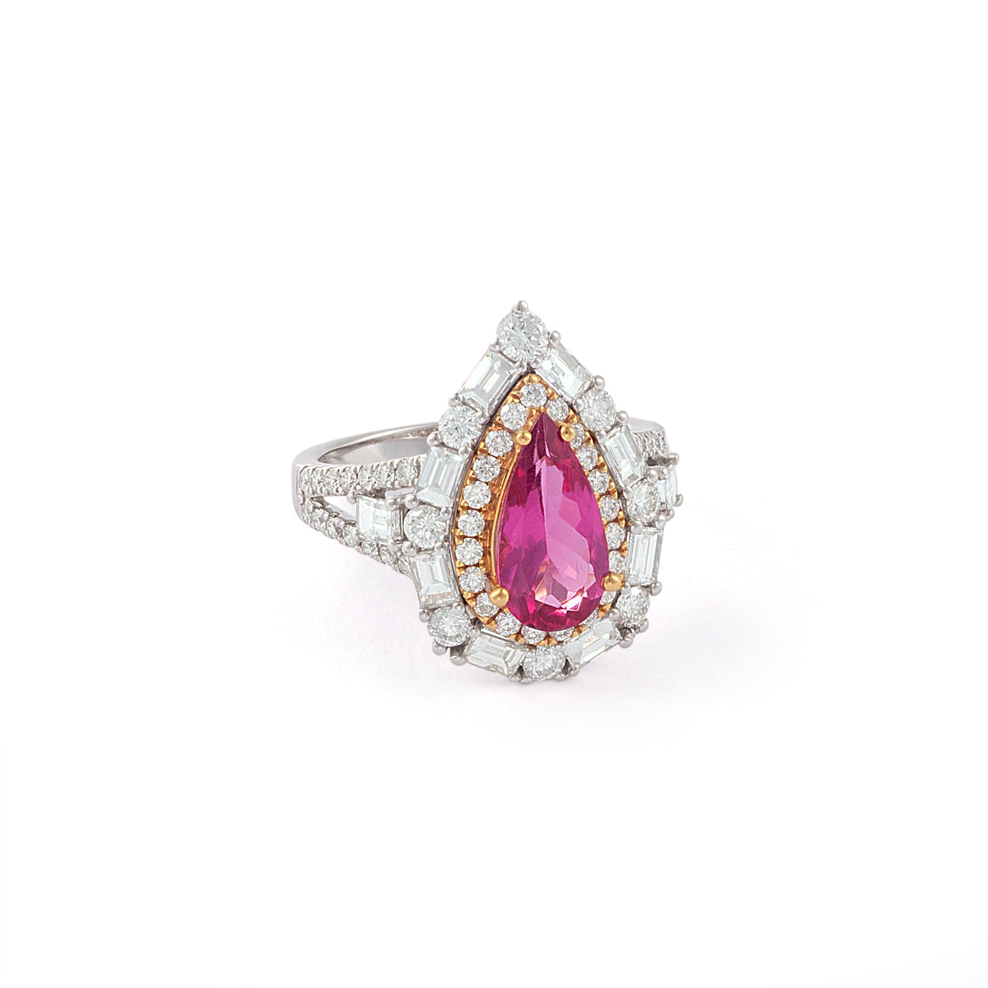 Anel Princesse Rubelita (1,42ct) e Diamante (1,69 ct) em Ouro Branco.