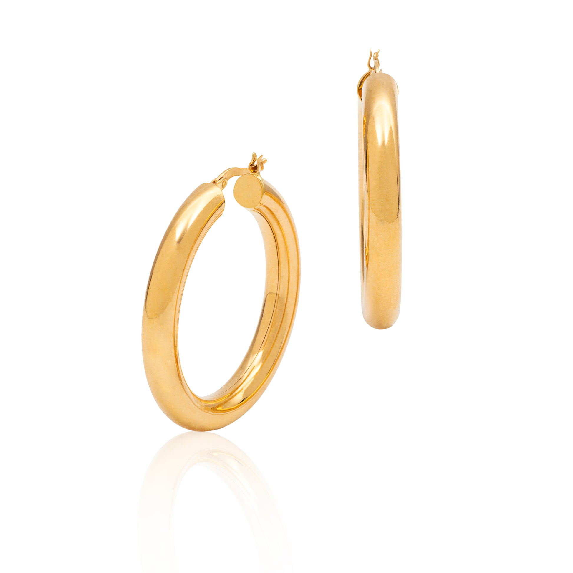 O Brinco Arte consiste em uma argola redonda perfeita para qualquer ocasião! Seu tamanho é de 3,5cm em ouro amarelo.