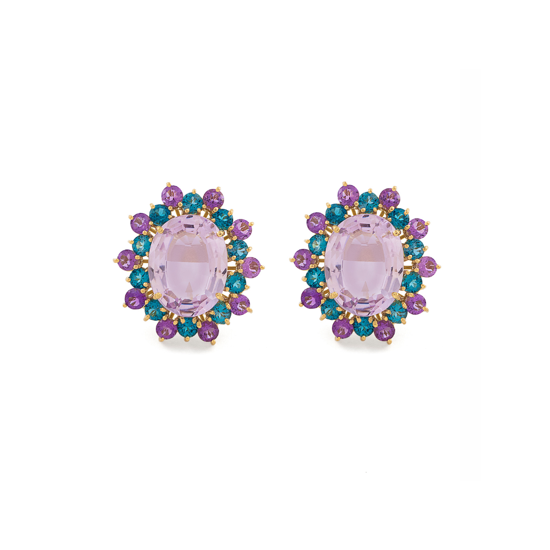 O seu design é formado através de Amtistas e Topázios London Blue em ouro amarelo.