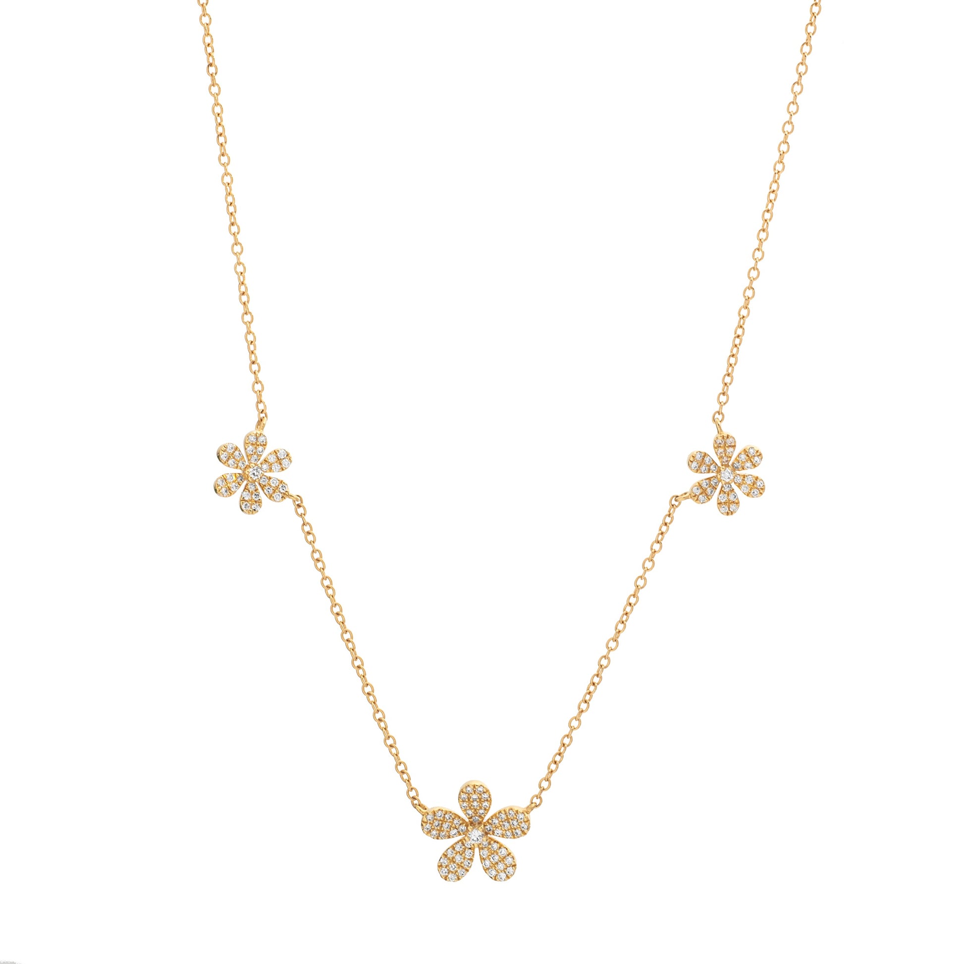 Composto por suas três flores em diamantes 0,46ct, confeccionadas em ouro amarelo, a peça exala leveza, luminosidade e afeto. Uma joia que transforma pequenos gestos em memórias eternas e perfumadas.